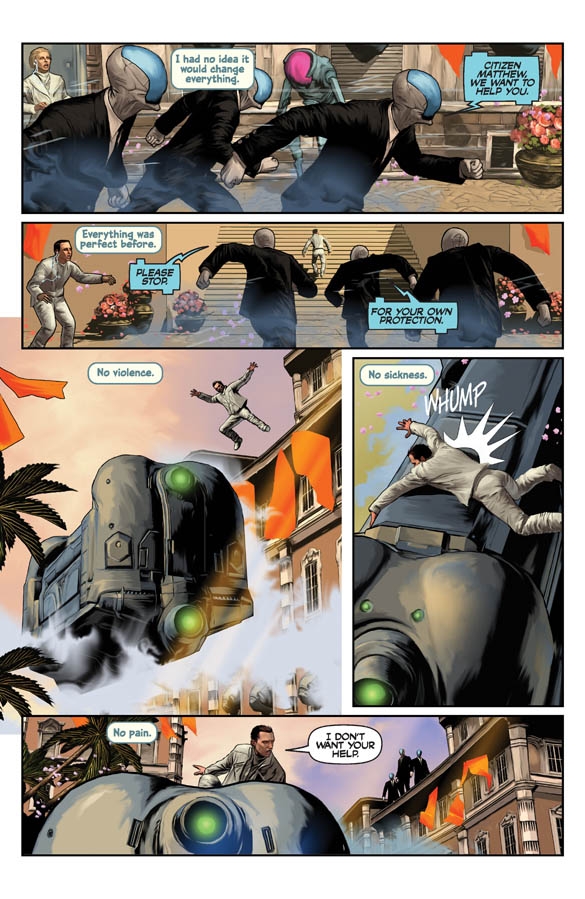 Utopia is here. Hunger, sickness, work... all relics of a long forgotten past. For the greater good of the human species, all individuality, creativity, and negative emotions have been genetically bred out and medically suppressed. The population is limited to segregated areas where people lead long lives of leisure, games, and socializing. Only one man and one woman seem to notice, care, or think differently. Once they find each other, their relationship sparks a revolution... but will their love cause the salvation or destruction of mankind?