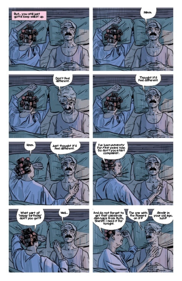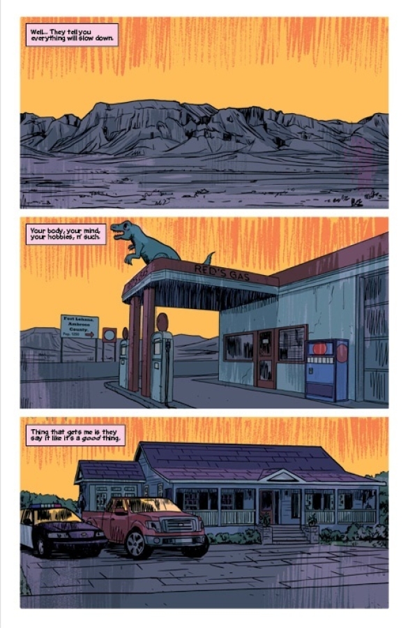 CRIMINAL colorist and first time solo artist JACOB PHILLIPS and writer CHRIS CONDON break onto the scene with a brand-new ongoing series! Like Paris, Texas gut-punched by No Country for Old Men, this mature neo-Western crime series kicks off when the search for a casserole dish leads to a dark and tense confrontation on Sheriff Joe Bob Coates’ 70th birthday. "CHRIS & JACOB pull off something remarkable here. A vivid and bright story that nails a thorough sense of foreboding and darkness. A shocking amount of talent for a duo so fresh to comics!" —CHIP ZDARSKY (SEX CRIMINALS, Daredevil)