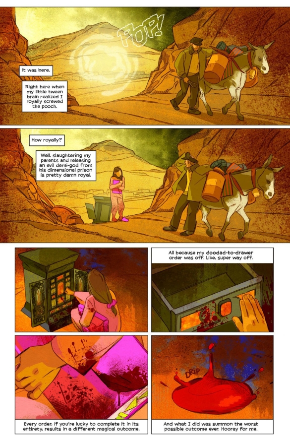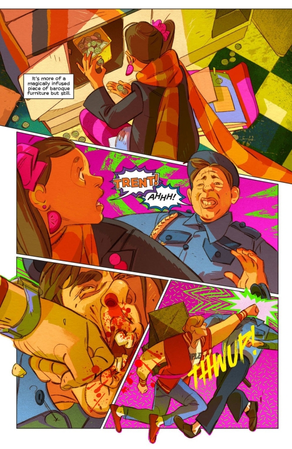 In this vibrant, tongue-in-cheek adventure series, atypical teen Avani and midwestern jock Trent teleport across a post-Cold War landscape to collect bizarre relics. Why? Well, because they need to summon the arcane powers of a resplendent 17th-century cabinet to fix a teeny-tiny mistake the last time Avani used it…unleashing an ancient evil from its prison and accidentally slaughtering her parents.
