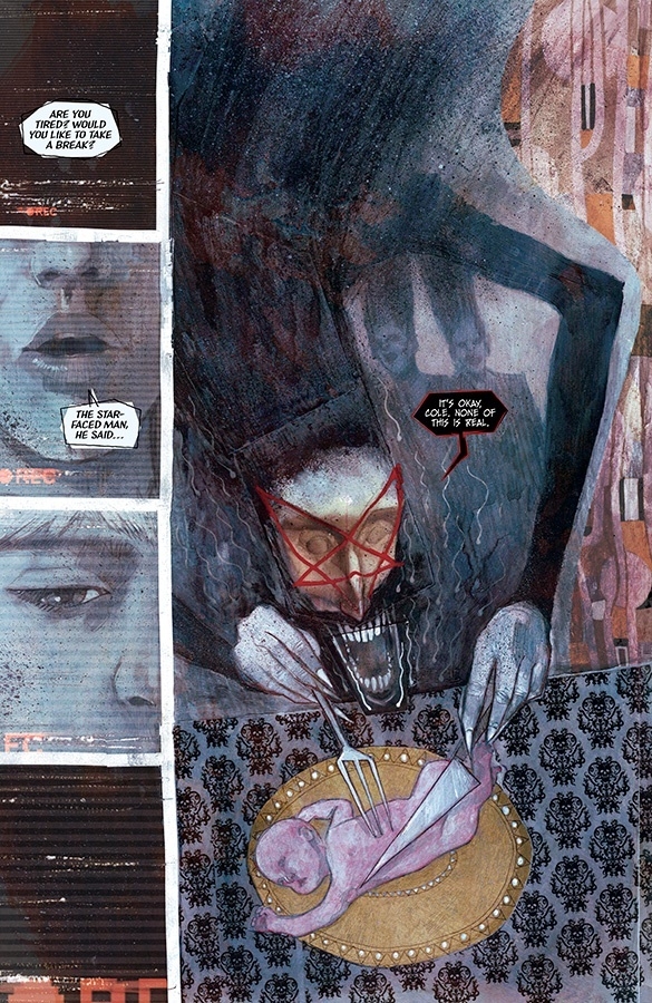 COLE TURNER has spent most of his life suppressing false memories of Satanic ritual abuse at his preschool. Now, he’s the newest recruit of the Department of Truth…and he just found out those false memories might be truer than he thinks. JAMES TYNION IV (Batman, Something is Killing the Children) & MARTIN SIMMONDS (Dying is Easy) continue their breakout conspiracy thriller!