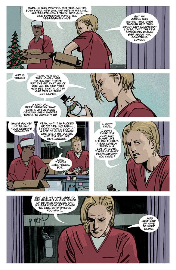 The only police officer to get close to the Deviant Killer in ’72 took an ax to his face…and lived. But when that same officer starts tracking down possible leads, will the primary suspect survive the encounter? The winter nights stretch on as JAMES TYNION IV (DRACULA) and JOSHUA HIXSON (The Plot) continue their snow-swept horror story.