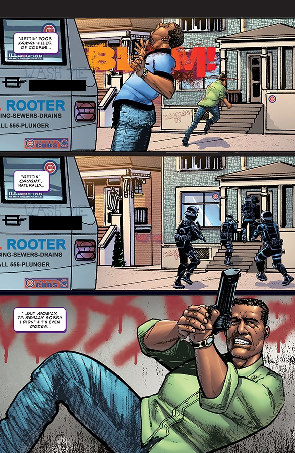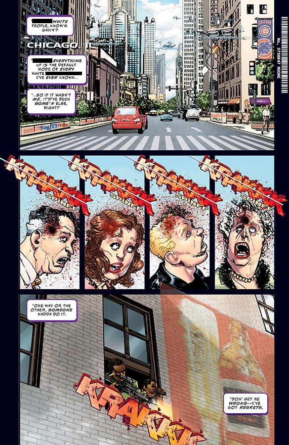 An America sundered. An America enraged. An America terrified. An America shattered by greed and racism, violence and fear, nihilism and tragedy... ...and that's when everything really goes to hell.