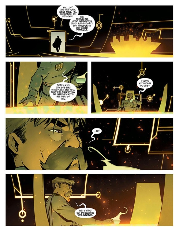 END OF STORY ARCThe second arc concludes! Agents of the Empire attempt to murder Vic and the team in a variety of inventive and horrible ways, but it turns out it's all just a terrible misunderstanding! So, you know, it's just a standard day. Also: Harpo gets laid!