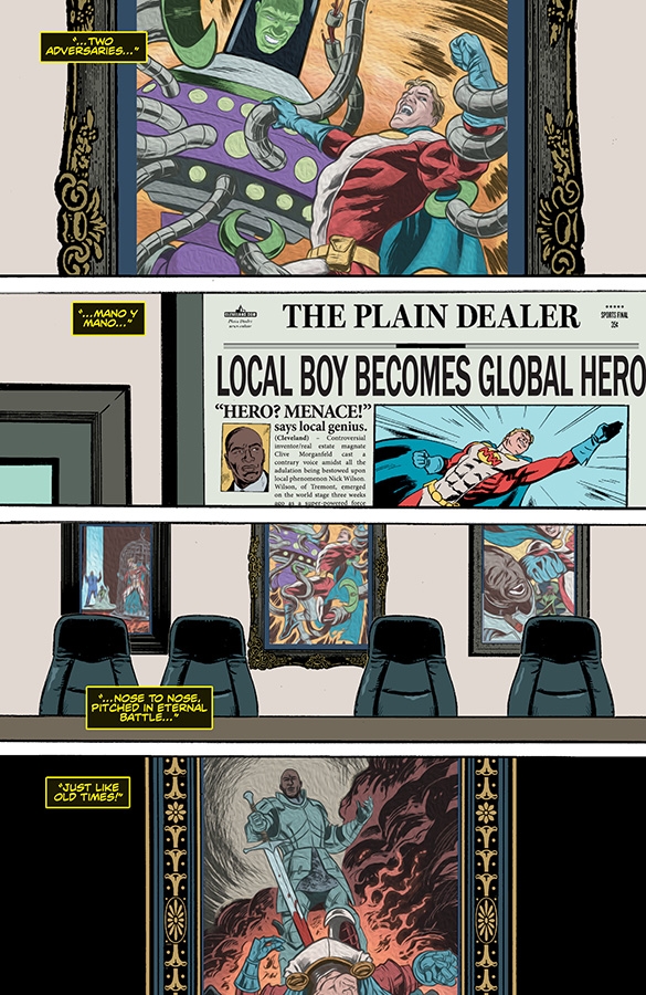 When the world’s only superhero Nick Wilson lost his superpowers, his arch nemesis Clive Morganfield had to settle for merely being a billionaire industrialist. It didn’t sit well with his ego, so when Nick reemerges on the scene, Clive approaches him with a bizarre business proposition that raises a number of questions: Can enemies be partners? Can you build a future on the ashes of the past? And what secrets of the universe are held inside the grooves of a jug-band record from the 1920s?