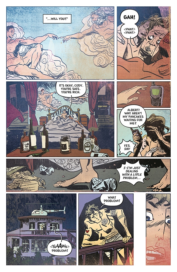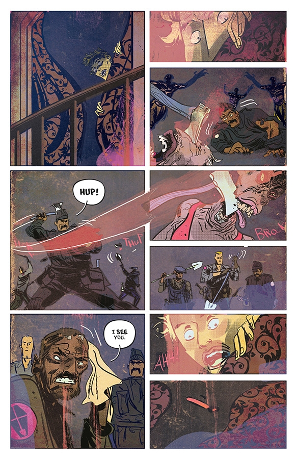 The Black Temple celebrates Morgan’s triumph at the ghost storm. But only Morgan knows the truth: she’s failed them all. She’s got no clue what the vision she received even means. And before the night is over, she may end her life…. Meanwhile, the Gravediggers trap Cody Bloom. He was the Black Temple’s previous prophet before he escaped. To find Cole’s daughter and stop the coming apocalypse, Morphea will have to enter Bloom’s drug-addled mind and unlock the secrets of the Dark Gods. Oversized finale of the first arc!