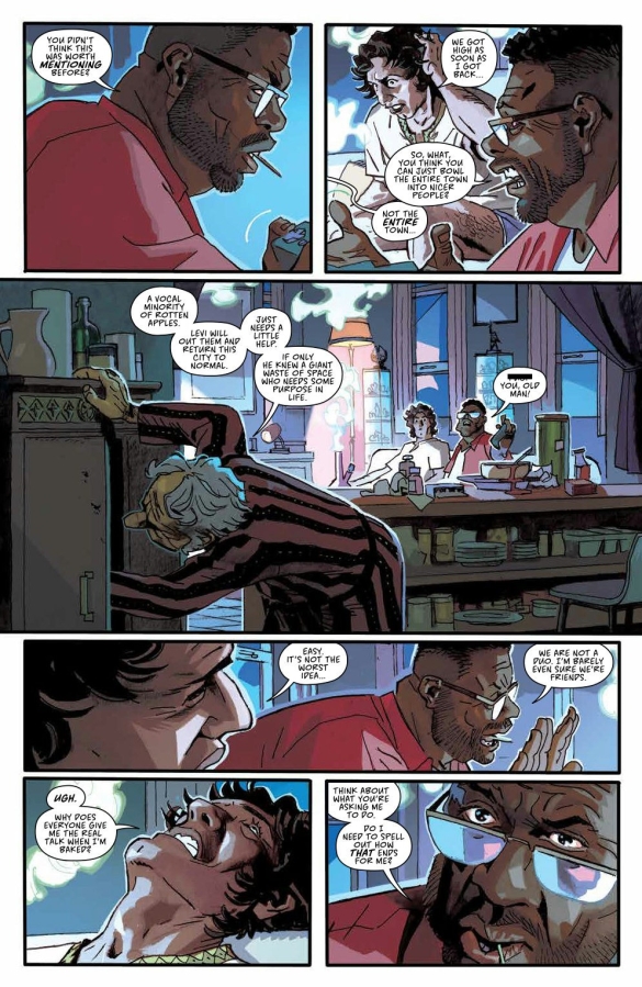 Levi infiltrates a secret meeting of neo-no-goodniks and discovers a resurrected 20th-century supervillain with a sinister sales pitch, forcing the Holy Roller to offer his own teeth-shattering sermon of justice!