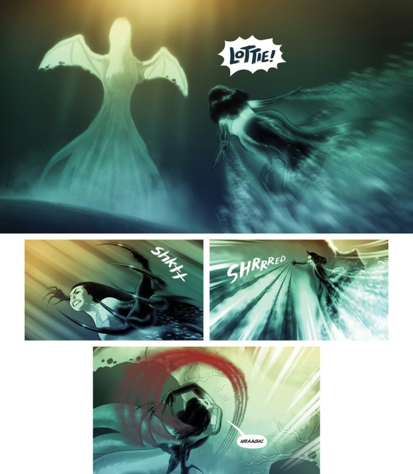 The mermaid and her only companion—a tiny axolotl named Lottie—are thrust into peril once again when they encounter a fearsome water beast looking for its next meal. Things get more complicated when a mysterious stranger enters the fray. Is he friend or foe?