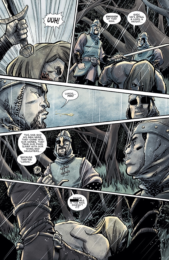 The mysterious Stranger prepares the castle for war, while Feist and his men struggle to avoid the executioner's axe. With little hope, and less time, the Stranger unveils his secret weapon.