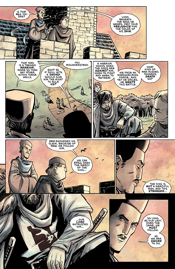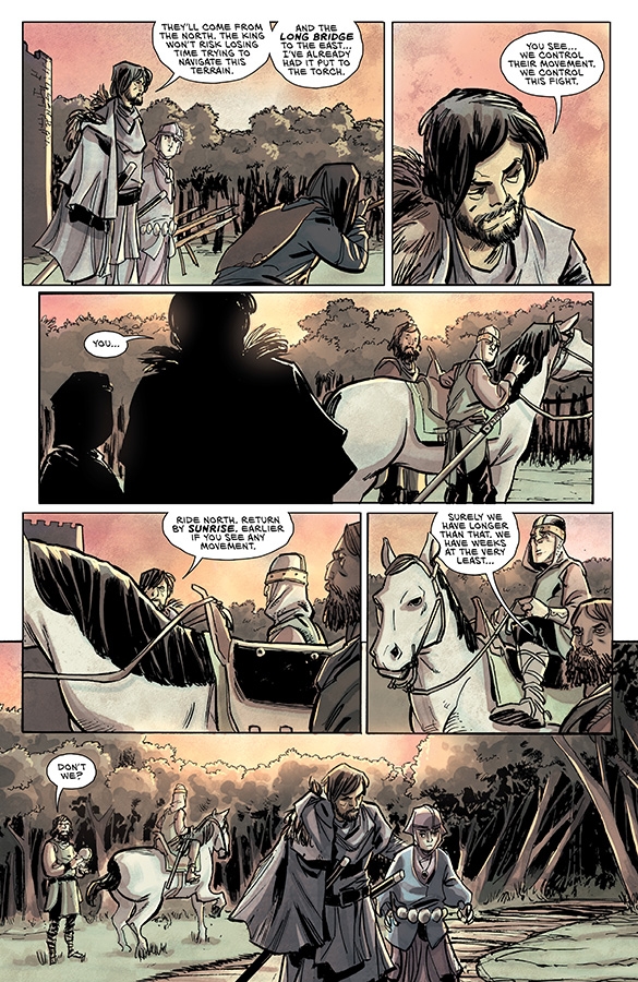 On the outskirts of the forest, Feist’s men prepare to seize the castle, promising to rain death upon the defenders. Unaware of this peril, the court advisors search for clues to the origin of the mysterious Stranger.