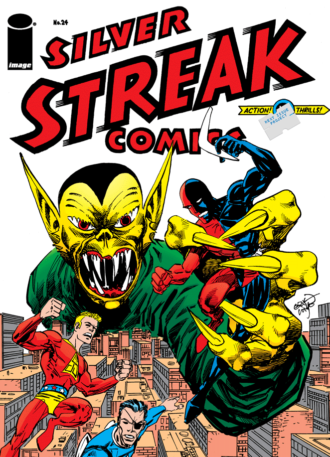 Written by ERIK LARSEN, PAUL GRIST, STEVE HORTON and MICHAEL T. GILBERT. Art by ERIK LARSEN, PAUL GRIST, ALAN WEISS and MICHAEL T. GILBERT. Cover by ERIK LARSEN. A NEXT ISSUE PROJECT PUBLICATION THE GOLDEN AGE DAREDEVIL! SILVER STREAK! CAPTAIN BATTLE! THE CLAW! Some of the greatest creations from yesterday brought back to life by some of the greatest creators of today! Back at last! Golden Age greats revived for a modern audience! THE NEXT ISSUE PROJECT is an ongoing series of comics that continues a classic canceled title! All stories are complete, self-contained and cool as all hell! All books are Golden Age sized, but these aren't simply an homage to Golden Age comics