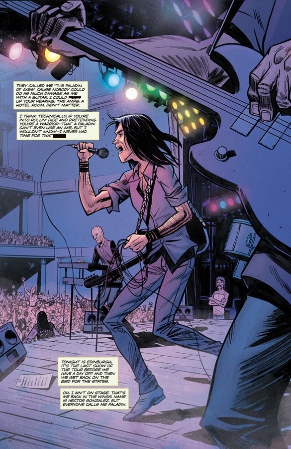 It's the first appearance of HECTOR SMALLEY, a guitar tech known as THE PALADIN OF AXES. He's working for the world's biggest rock band, and when he and the whole band are killed in a plane crash, it's unexpectedly just the beginning of his bad times.
