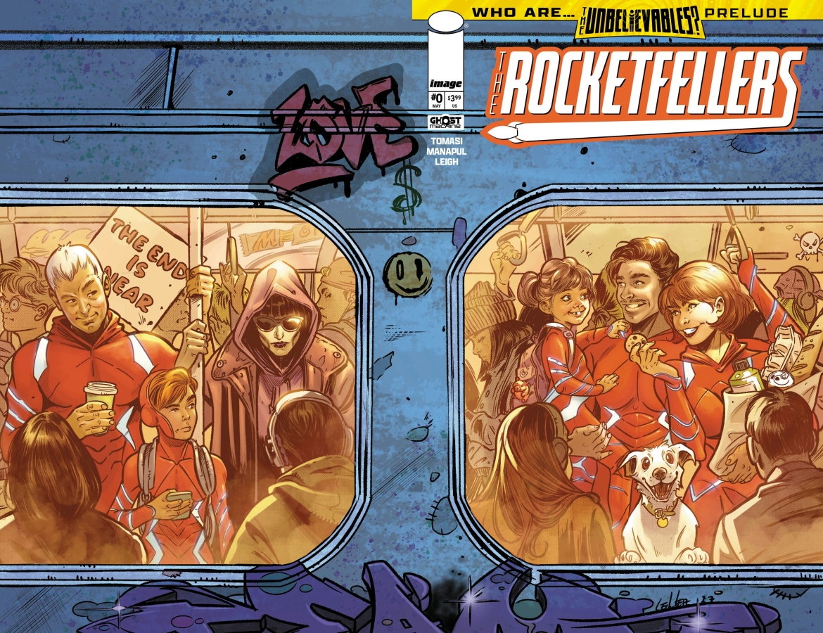 Among us are…the Unbelievables! A bold new era begins as the Rocketfeller family picks up the pieces after Roland’s death disappearance, and are now caretakers of their deadliest foe, the amnesiac Raina Rocketfeller. But they’re not the only ones looking for Roland, as the Trillion Dollar Kid makes his world debut—and the family from the future recalls what it was like to begin their life in our present.
