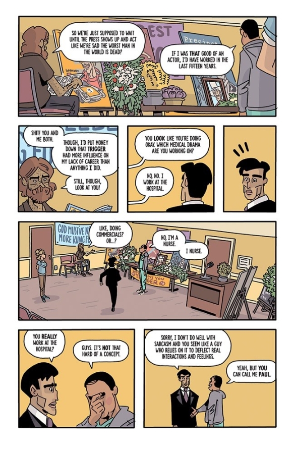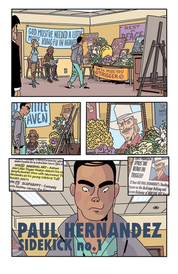 "KYLE STARKS is a treasure. With THE SIX SIDEKICKS OF TRIGGER KEATON, he proves that he’s not only effortlessly funny, but can also craft rich, distinct characters that you can’t help but root for, even at their worst. And CHRIS SCHWEIZER is an astounding artist, mastering both perfect expressions and wild action scenes on jam-packed, eye-popping pages. I highly recommend this book!"—CHIP ZDARSKY (Daredevil) For fans of CHEW and ASSASSIN NATION comes a new action-mystery series from Eisner Award nominees CHRIS SCHWEIZER (Crogan Adventures) and KYLE STARKS (SEXCASTLE). The world's most unlikable action star has been found dead, and his previous TV sidekicks are looking to solve the mystery. But how can you catch a murderer when almost everyone hated the victim? Now these sidekicks are going to learn what it means to be the stars of the show…that is, if any of them survive the STUNTMAN WAR!