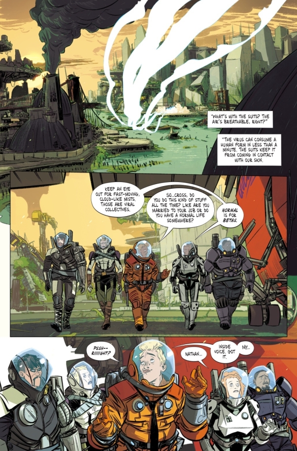 Nathan Bright has no memory of his alleged role in the terrorist attack that killed 18 billion people, but that isn’t stopping him from trying to atone for the actions of his past self. Hunted by literally everyone in the galaxy, Nathan’s quest for redemption takes him to the scene of the crime—where he discovers that Earth’s not lifeless at all… it’s monstrous!This summer, writer JODY LEHEUP (SHIRTLESS BEAR-FIGHTER!), artist NATHAN FOX (HAUNT, DMZ), and colorist MORENO DINISIO (BLACK SCIENCE) return with the hotly anticipated second chapter of their jaw-dropping, critically acclaimed sci-fi sensation!