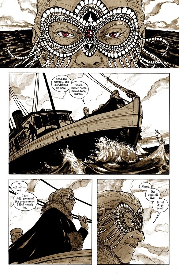 Basically, a bunch of 1920s gods based on major modernist figures stuck in the middle of an Agatha Christie murder mystery, done in a comics-prose hybrid that's clearly trying to start a fight with JONATHAN HICKMAN. (Yeah, you heard, Jon. Come at us, bro.) It's high art versus lo art, with the most beautiful AUD KOCH artwork the world has ever seen. We're so excited, we may have to have a lie down.