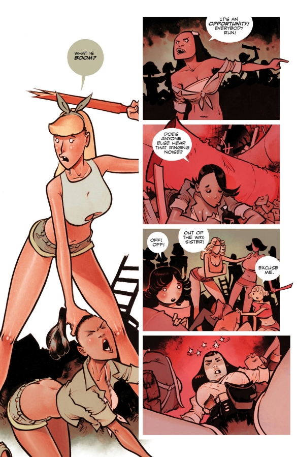 The girls make it out of the harem, but can they make it off the island? A warden with a bullwhip and pushup bra says "not on my watch." The chase is on!