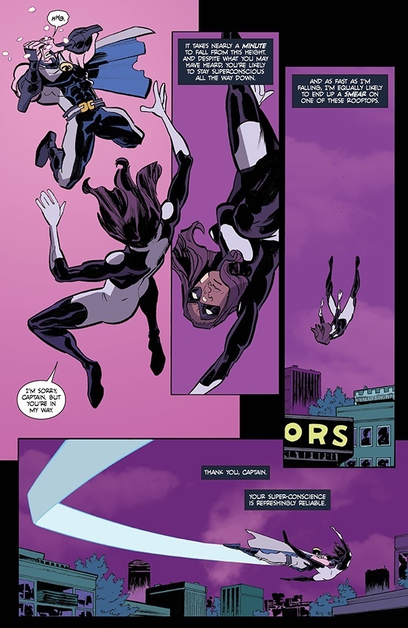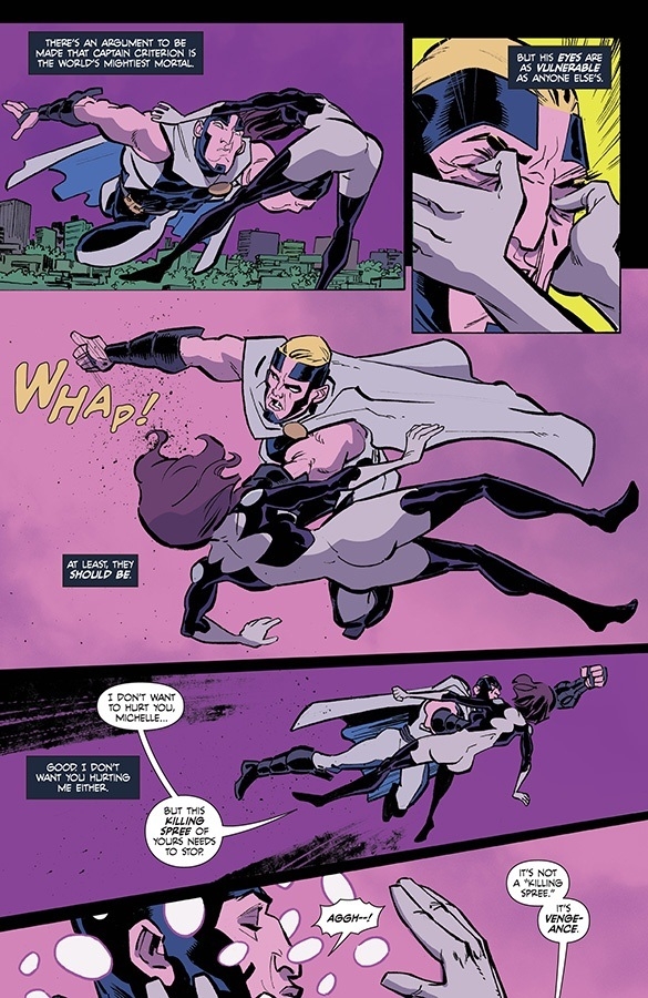 Michelle Metcalf’s descent into desperation and violence in the name of vengeance reaches its lowest point when her trail of blood leads her into an epic confrontation with Earth’s greatest and mightiest heroes—the Praetorians. It’s a conflict in which Michelle is outnumbered and out-powered, and she’ll never be the same.