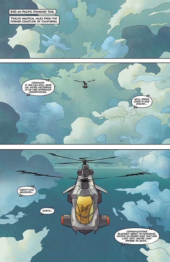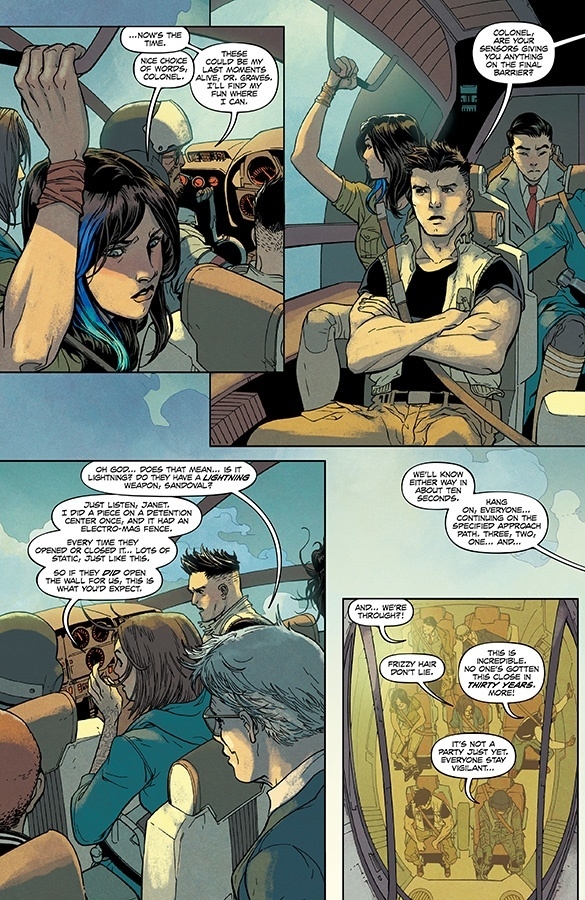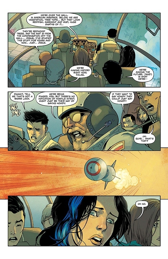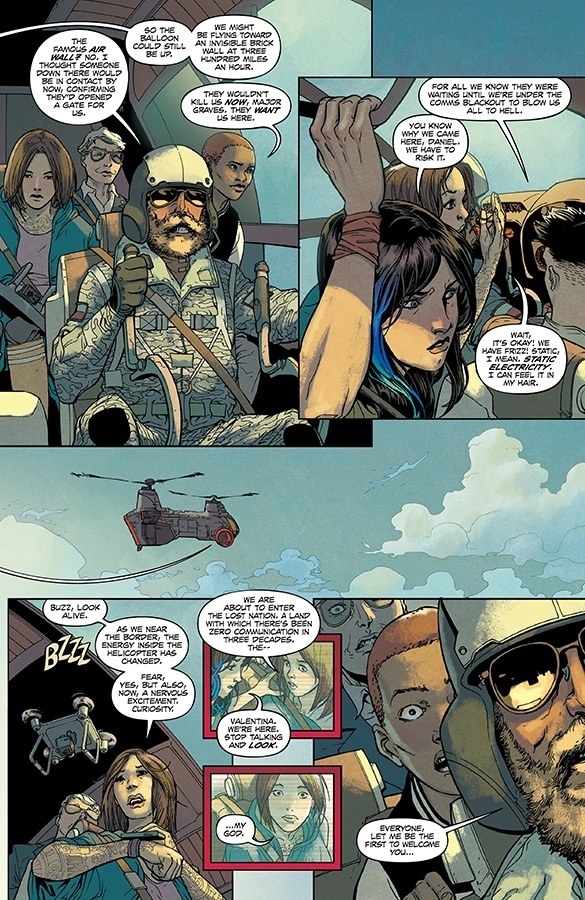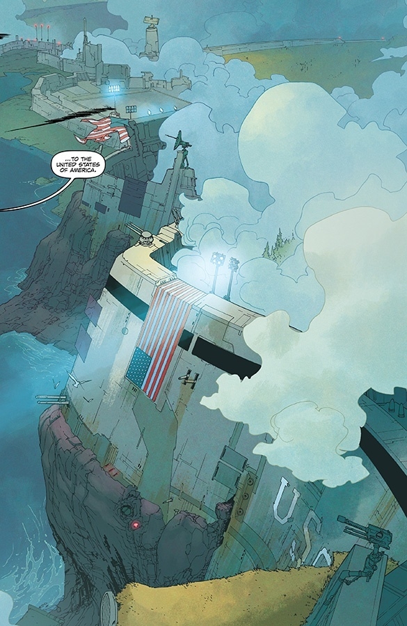 This November, New York Times bestselling writers SCOTT SNYDER (WYTCHES, A.D.: AFTER DEATH) and CHARLES SOULE (CURSE WORDS, the forthcoming novel Anyone) will team up with artists GIUSEPPE CAMUNCOLI (The Amazing Spider-Man, Darth Vader, Hellblazer) and DANIELE ORLANDINI (Darth Vader) and 2019 Eisner Award-winning colorist MATT WILSON (THE WICKED AND THE DIVINE, PAPER GIRLS) to embark on an epic adventure in the brand-new ongoing series, UNDISCOVERED COUNTRY! In this special oversized first issue, readers will journey into the near future, and an unknown nation that was once the United States of America—a land that’s become shrouded in mystery after walling itself off from the rest of the world without explanation over thirty years ago. When a team seeking a cure for a global pandemic breaches U.S. borders, they quickly find themselves in a struggle to survive this strange and deadly lost continent!