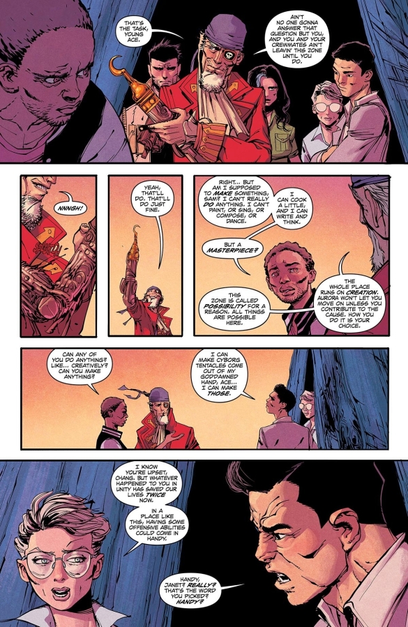 The explorers push deeper into the third Zone—POSSIBILITY, a region built on and powered by the strength of American creativity. For cultural expert Ace Kenyatta, this is his finest hour. His knowledge will be key to the team surviving a place where truly anything is possible—from the terrifying to the sublime.