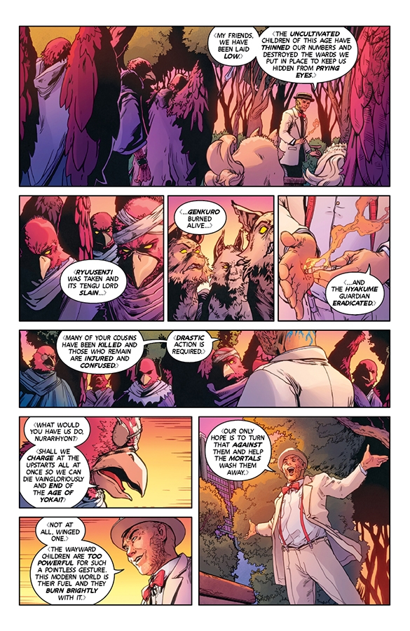 The third story arc’s explosive finish. All paths lead to war. Cover A is part five of a five-part panorama. Buy all five issues of this story arc to fit them together into a massive WAYWARD illustration.