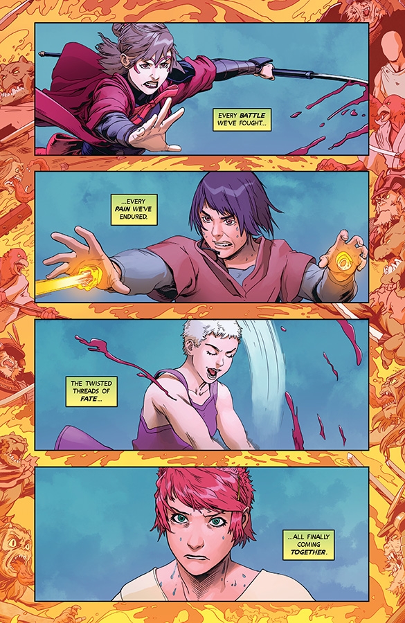 "BOUND TO FATE," Conclusion Fate burns as the past and present clash in the final battle. WAYWARD concludes with a special double-sized spectacular that includes an epic 30-page story, pin-ups, and more!
