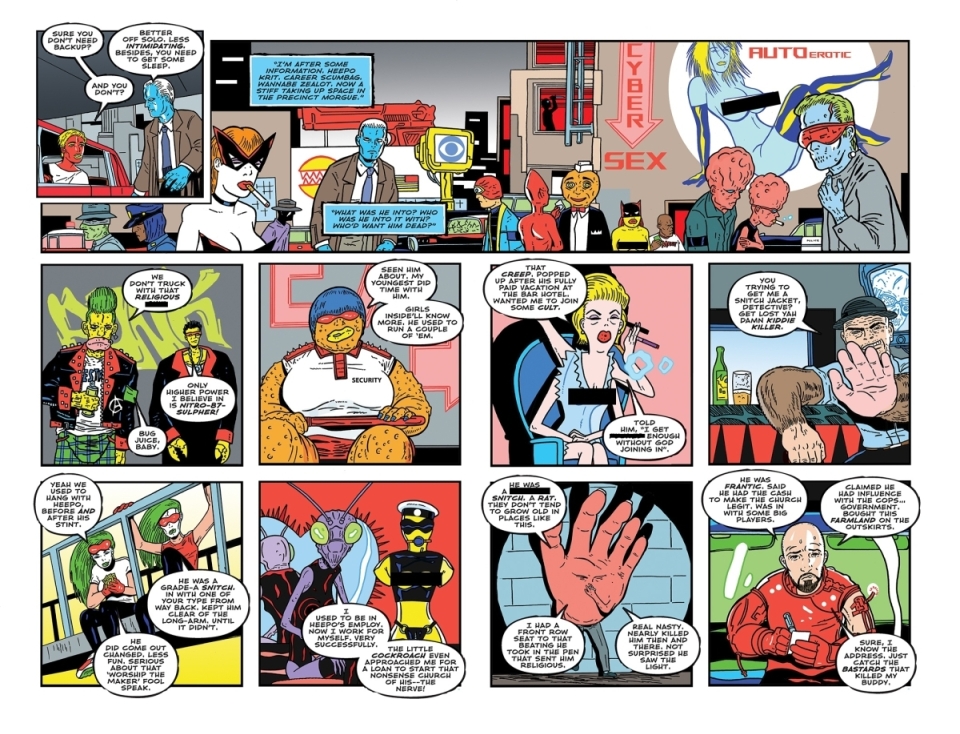 With things heating up, Ovraand Donut find themselves inincreasingly dangerous andstrange situations as forcesfrom all sides converge to stopthem uncovering the truth ofthe dockside triple homicide.Bullets fly, new suspects appear,and Ovra goes on one wildtrip. It’s weird work—butsomebody’s gotta do it.