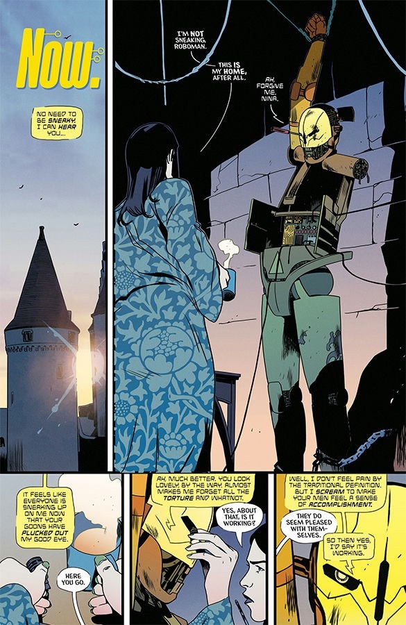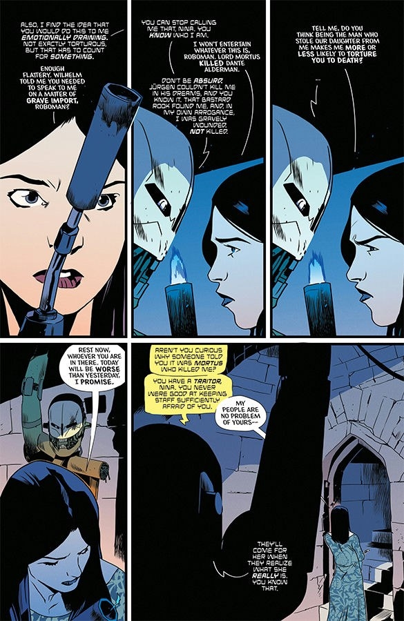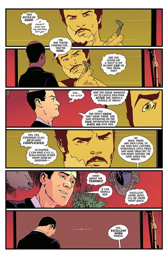 Betrayal! Despite a heroic sacrifice intended to buy her freedom from V.E.I.L., Annalise has become a prisoner in Chuma Castle. Now she must face her greatest challenge yet—Etiquette Classes! The spy thriller slash touching family saga from MATTHEW ROSENBERG (WHAT'S THE FURTHEST PLACE FROM HERE?) and STEFANO LANDINI (Prodigy: Slaves of Mars) nears its unpredictable conclusion—and you’ll never guess what’s coming. Because it’s unpredictable.