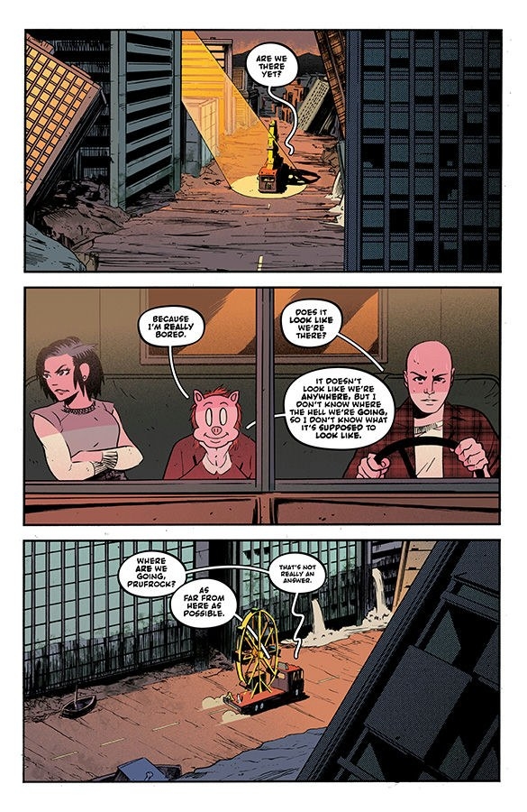 Prufrock, Mallory, and Merrill find out just how far you have to run to get away from your old problems. They also find out how easy it is to get new problems. But at least they've got a dog.