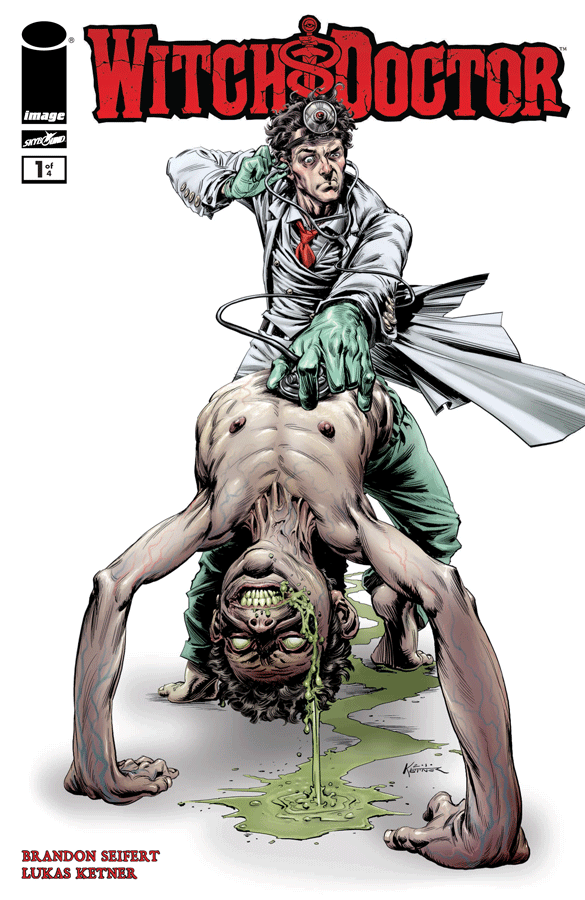 HOUSE M.D. MEETS FRINGE IN THE FIRST SKYBOUND ORIGINAL FROM ROBERT KIRKMAN's NEW COMICS IMPRINT! Meet Vincent Morrow, a doctor looking for a vaccine... for the apocalypse! In this stand-alone first issue, a family needs Dr. Morrow's help with their son's illness: Demonic possession. But when Morrow attempts an experimental cure, he discovers the boy's disease isn't all spinning heads and pea soup - it's like nothing you've seen before! Horror gets a brain transplant in WITCH DOCTOR, the book WARREN ELLIS calls 'mental.'