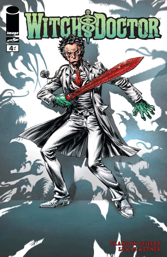 It's Dr. Morrow's toughest challenge yet: a magical malpractice hearing! Mystics Without Borders wants answers. Why did the case of the 'Patient from the Black Lagoon' go so wrong? What's the biological secret of the Deep Ones, and their connection to the 'Great Old Infections'? And how do you fight an epidemic that's turning people into fish-people? Find out, in the finale of the debut miniseries from Robert Kirkman's Skybound Originals line! 'WITCH DOCTOR has the potential to be the next great horror story in the comic industry.' - Bloody Disgusting
