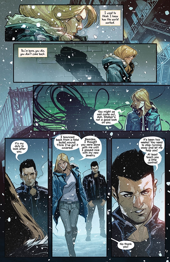 A missing-child case brings Alex and the Witchblade face to face with a powerful demon, and when Alex begins to suspect Ash isn't telling her everything about the Artifact, she turns to her own sources for information, with devastating results.