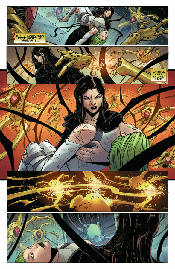 Who would build a machine that can suffer?" Jake and Sara's investigation into cyberterrorism and targeted murders begins to spiral, even as they close in on their prime suspect. And the enigmatic Aphrodite reveals herself to be far more than a simple killing machine...but does that make her any less dangerous? Plus, celebrating springtime, collect the pair of Camilla d’Errico variants for Witchblade and The Darkness!