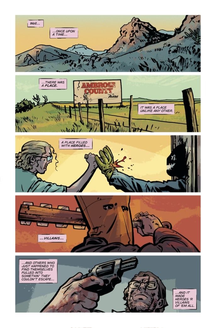 "Well... we're back! Joe Bob returns, this time for a story set in 2003 that we like to call 'Hell Comes to Allison Ranch.' It's our most action-packed story arc yet with strong thematic links to two of our previous, fan-favorite outings—That Texas Blood volume one and The Enfield Gang Massacre,” said Condon. “While this new arc has some connections to our past stories, it's also a great place for readers unfamiliar with Ambrose County or its inhabitants to jump on, and Jacob and I are excited to bring some new collaborators along with us, too. We are so excited to be adding letterer Hassan Otsmane-Elhaou and designer Michael Tivey to the That Texas Blood ranks. With the team we have assembled on this book, and the story we have to tell, I think this may just be the best That Texas Blood story yet."