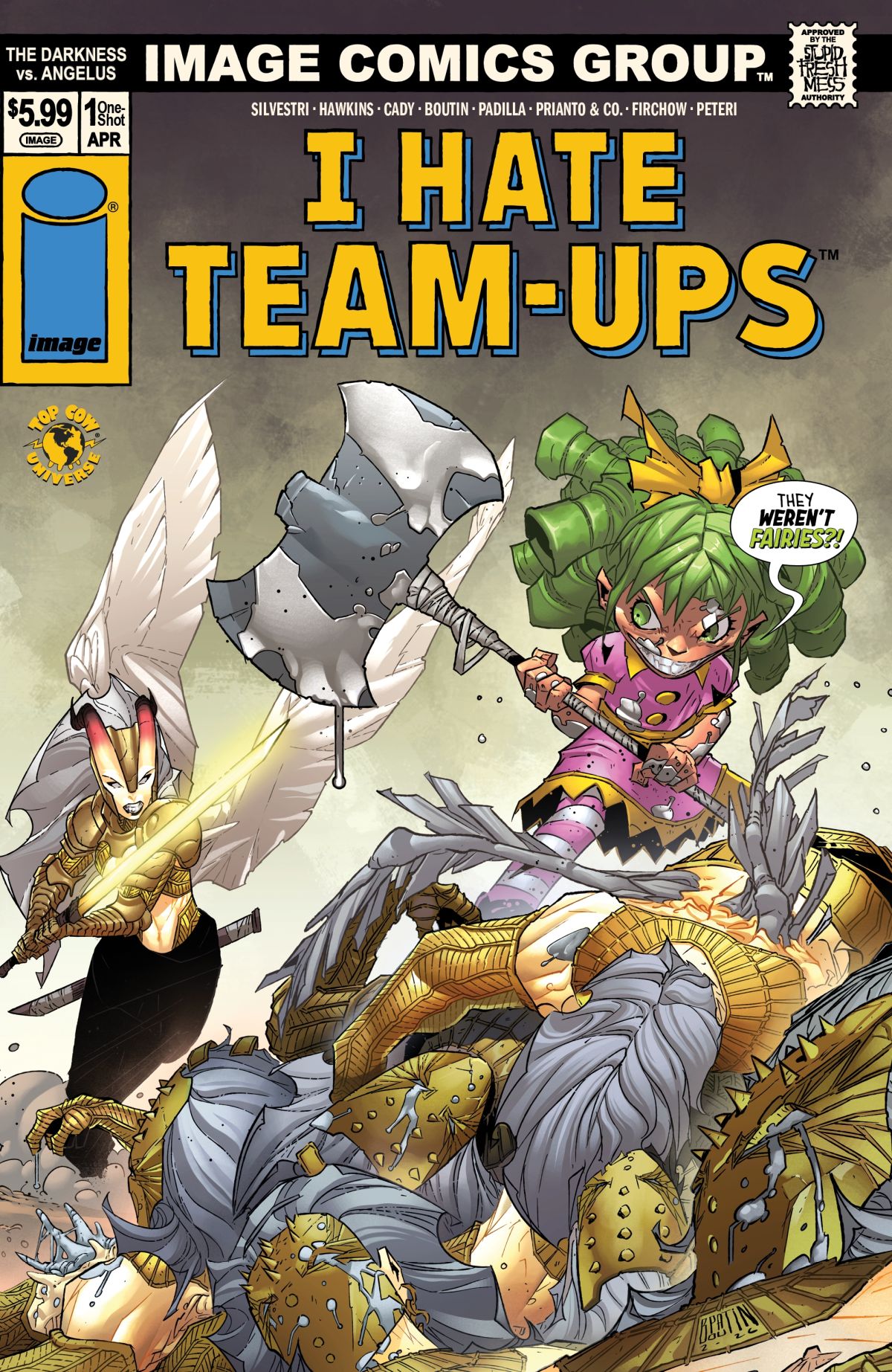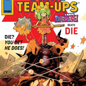 PORTLAND, Ore. 03/02/2026 — When Spawn team-up variants were announced, Gert was annoyed. When Youngblood team-ups were unveiled, Gert began sharpening her axe. And when Invincible team-up variants were revealed, Gert screeched: “I HATE TEAM-UPS!” Image Comics is all-in on Skottie Young’s I Hate Fairyland this April in celebration of the milestone #50 issue and warns fans of a highly deranged Gert, and her Fairyland pals, taking Image covers hostage all month long.