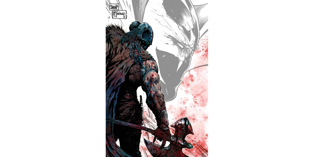 The highly collectible 1:250 copy incentive variant depicts McFarlane’s addition of Spawn to the background of Liam Sharp’s Cover A artwork. The piece blends Sharp’s medieval world with McFarlane’s signature take on Spawn and captures a defining moment in the character’s ever-expanding mythology.