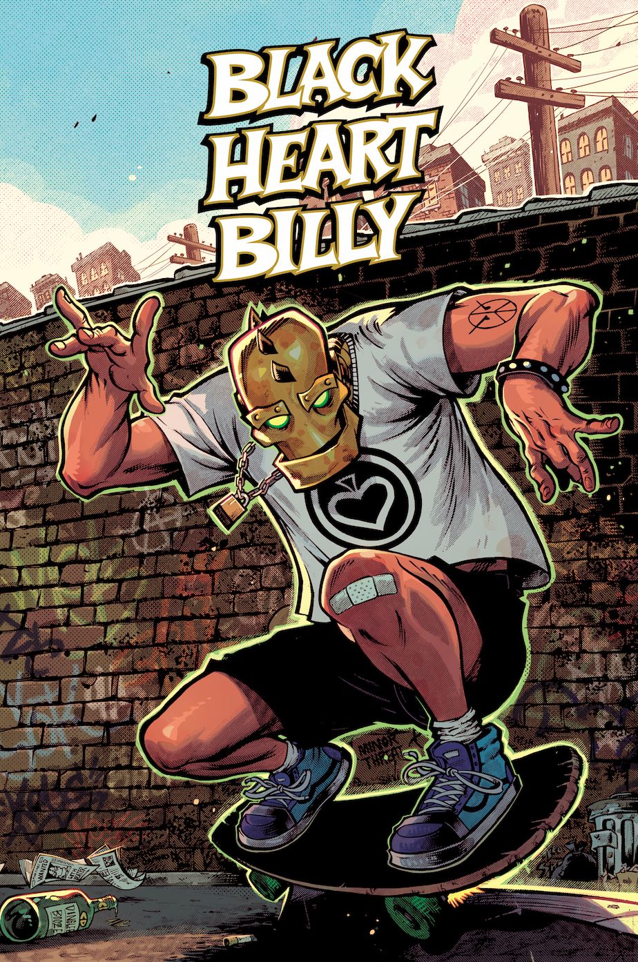 Remender added: "No character holds as much personal weight for me as Black Heart Billy. In 1999, I was a broke kid who’d just moved to San Francisco chasing a stupid dream to make independent comics. Skateboarding and punk rock had shaped my life and I wanted to create a book that lived in that world. Something absurd and unhinged and true to the scene that gave me a home. While sharing an office with Kieron Dwyer, I showed him a sketch I did of BHB. We immediately started riffing and cooking up a story that made us laugh so hard we couldn’t not make it. My longtime collaborator Harper Jaten jumped in, and we were set for a ton of free work! We never made a single dime off it, but that didn’t matter. What we got was unfiltered, ridiculous, joy. The kind you only get when you’re going nuts trying to make your friends laugh. Even 25 years later, Black Heart Billy lives close to my heart. Bringing him to life remains one of the purest, best times of my life."