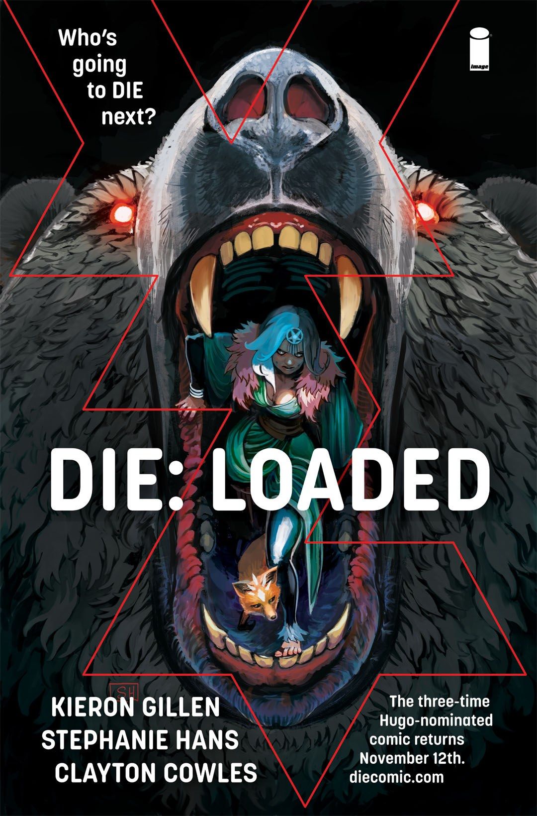 PORTLAND, Ore. 08/11/2025 — Bestselling We Called Them Giants juggernauts Kieron Gillen and Stephanie Hans will return to the twisted RPG realm of Die in an all-new story arc, Die: Loaded. The brand new campaign will invite fans back to the British Fantasy Award winning, three-time Hugo Award nominated Image Comics series this November.