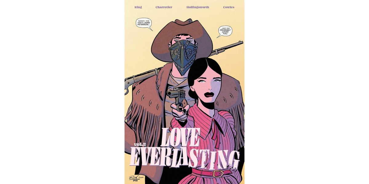 PORTLAND, Ore. 09/05/2025 — Multiple Eisner Award-winning writer Tom King (The Vision, Mister Miracle, Supergirl: Woman of Tomorrow) and critically acclaimed artist Elsa Charretier (November, The Unstoppable Wasp, Harley Quinn, Infinite Loop) deliver a haunting, genre-defying tale in the graphic novel series Love Everlasting. The third volume paperback in the series will collect Love Everlasting issues #11-15 and drop readers into a plot-twist tryst this month from Image Comics.