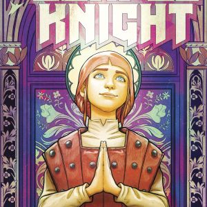 “From the outset, we knew we wanted to find a way to focus on the characters, and our initial conversations were around the idea of doing some kind of faux renaissance portraits for each of the mains,” said cover artist Nimit Malavia. “Given the time period, players involved in the story (Joan especially), and the direct connection to life and miraculous rebirth, it felt like an organic step to give each of the characters a saint-like aura / treatment.”