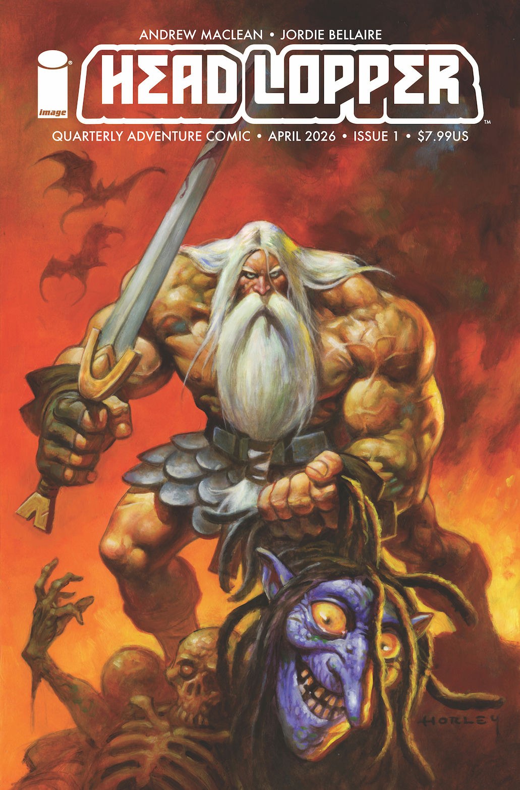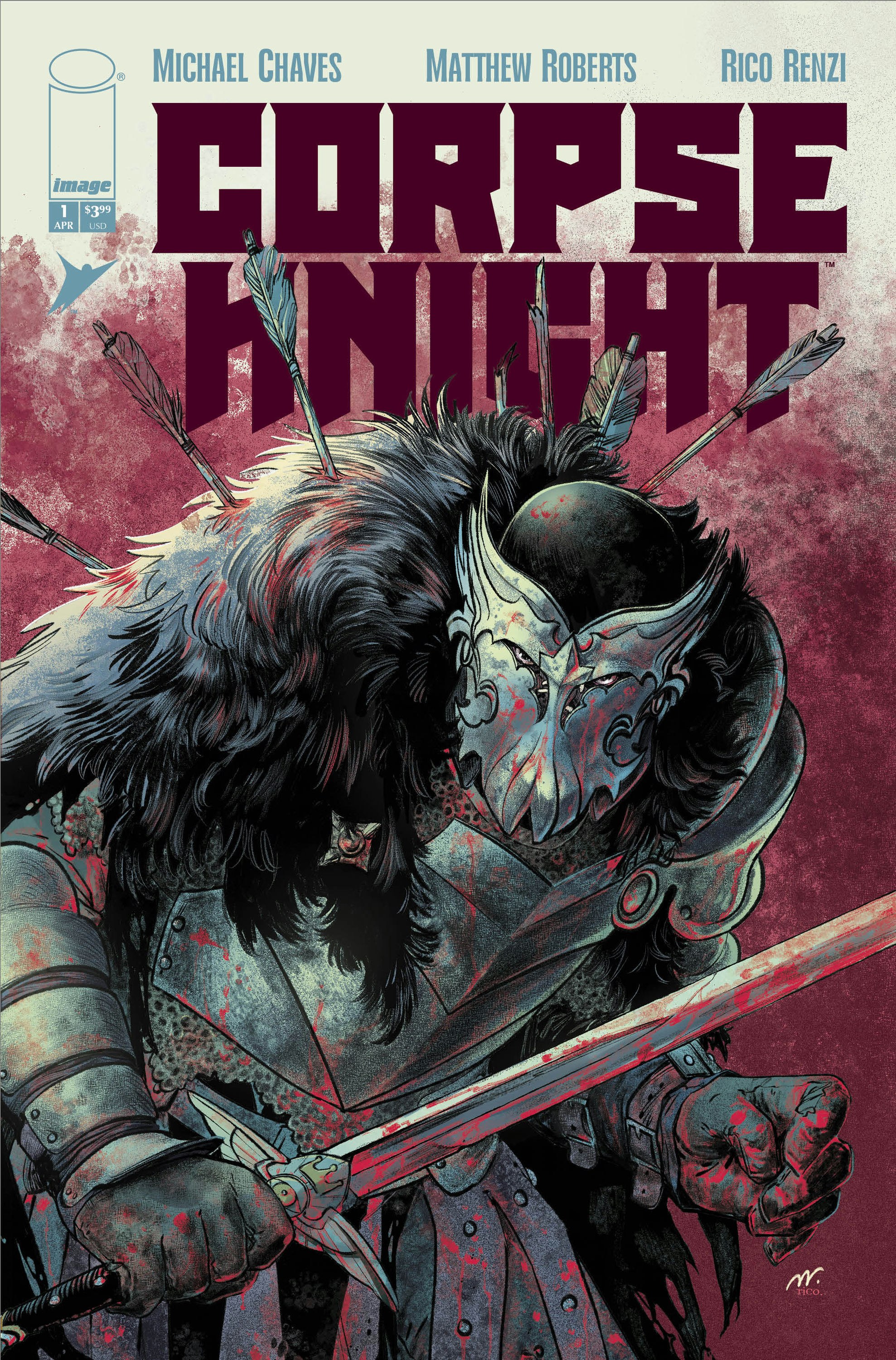 Dive into HEAD LOPPER for ANDREW MACLEAN’s masterclass in kinetic action and dark humor. Witness Norgal behead mythic beasts while his chatty, severed-witch-head companion, Agatha, provides relentless sass. It’s visually stunning, high-fantasy carnage that proves decapitation is better with company. Celebrate 10 YEARS of this award-winning, hit series with a NEW *extra-length* NUMBER ONE!CORPSE KNIGHT #1