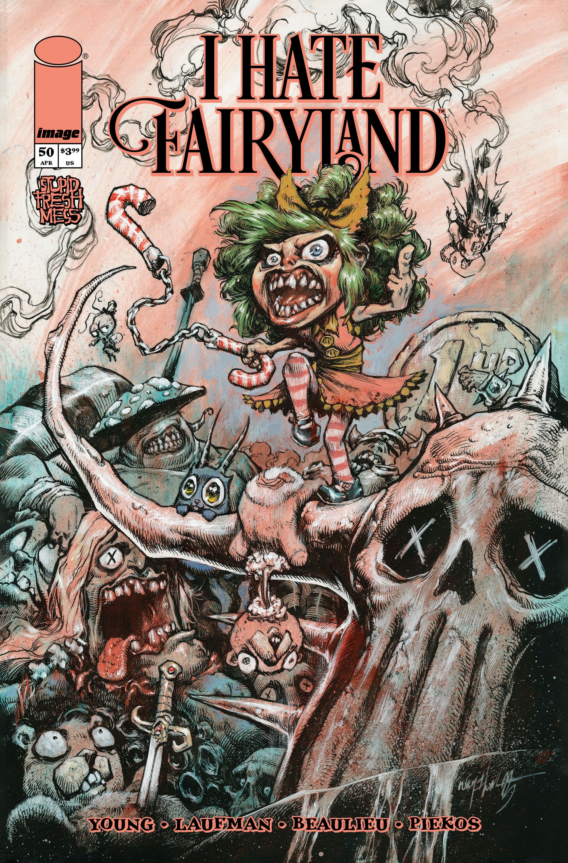 The lives of a professional killer and a high school teacher are bound by a terrifying, mysterious force.I HATE FAIRYLAND #50