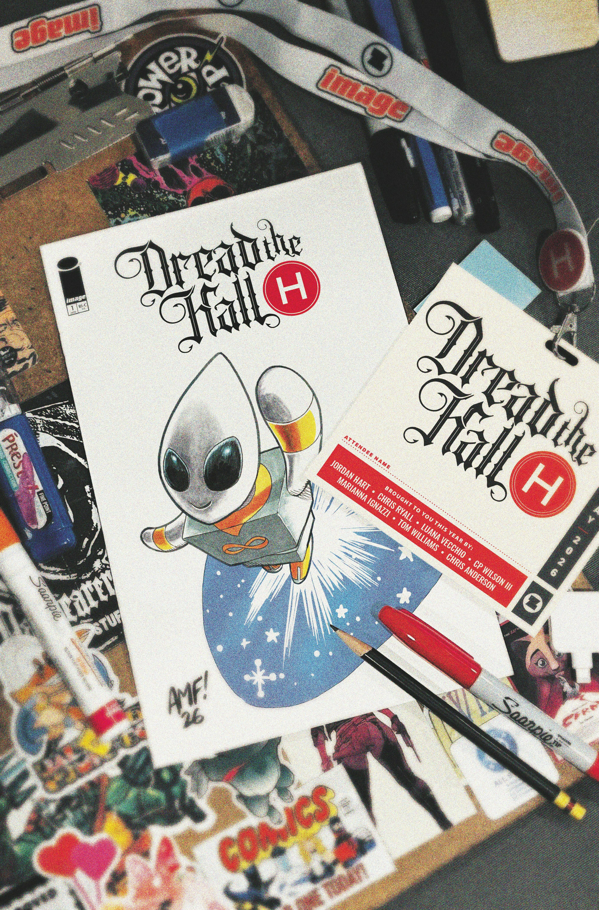 DREAD THE HALL H is back with your VIP pass to 48 pages of convention-related horror stories! Attending this show are CHRIS RYALL, CP WILSON III, and TOM WILLIAMS, with panel-breaking stories of the variant craze gone amok; and JORDAN HART alongside artists LUANA VECCHIO, MARIANNA IGNAZZI, and CHRIS ANDERSON, spreading con-tales, tasty custom ads, and a board game, too!