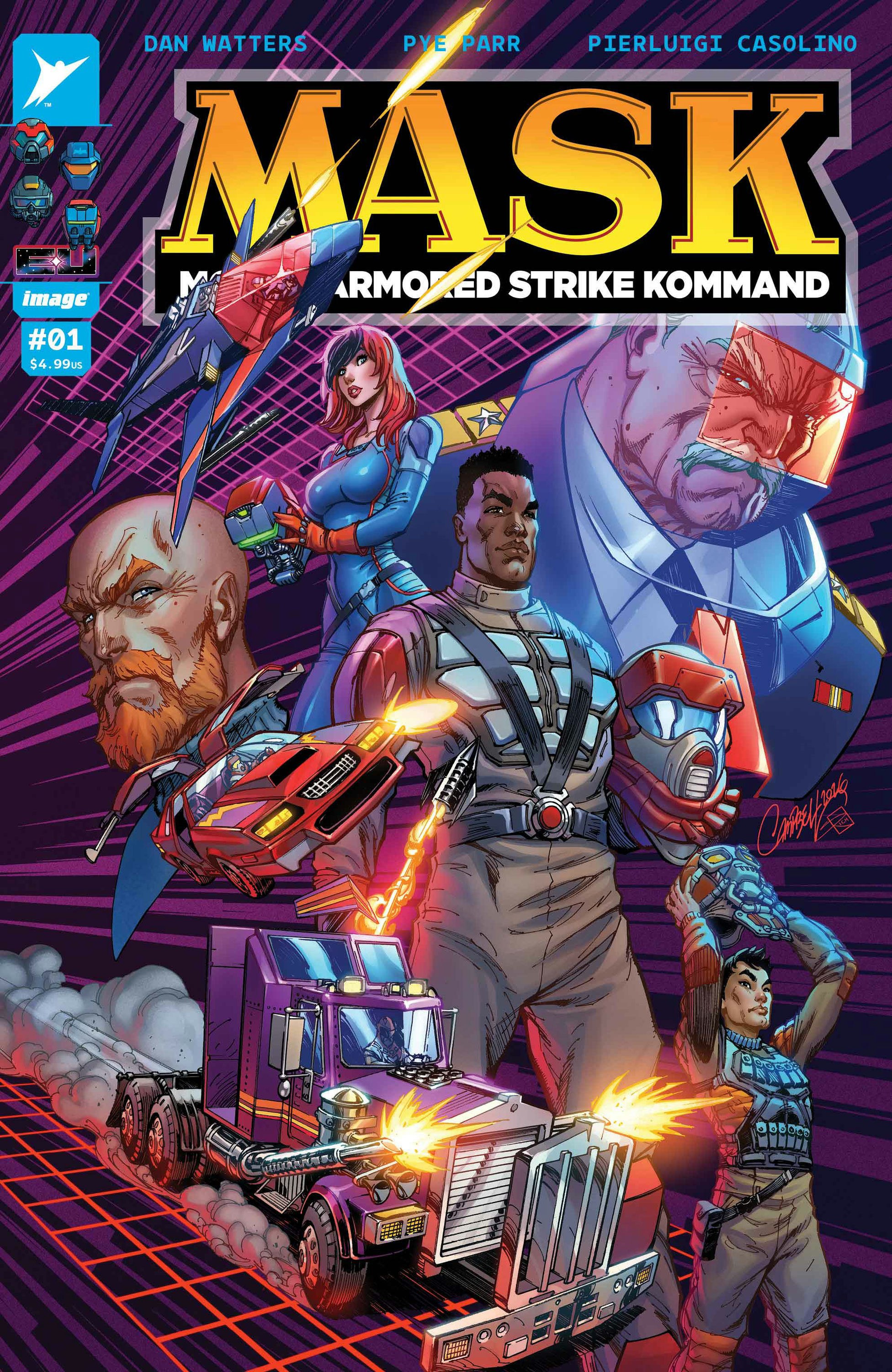 NEW SERIES THE NEXT PHASE OF THE ENERGON UNIVERSE STARTS HERE! The world is becoming a terrifying place. Matt Trakker needs your help saving it. Enter M.A.S.K. -- a network of specialists recruited to respond to the next global emergency. At a moment’s notice, Trakker and his agents can deploy bleeding-edge technology that converts their vehicles--and their drivers--into the ultimate weapon. But Miles Mayhem and V.E.N.O.M. are one step ahead in a secret arms race, scouring the globe for deadly weapons from this planet and beyond, ready to sell out the entire human race. Only M.A.S.K. can stop them… but will Trakker’s own secrets jeopardize their entire mission? Powerhouse creators DAN WATTERS and PYE PARR launch the most anticipated new series of the year, where anyone--and everyone--in the Energon Universe must join the fight for humanity’s survival. This is the first-ever Energon Universe blind?bag?program. The blind?bags will include a chance to get ANY of the solicited M.A.S.K. #1 covers, A-K, intermixed at varying degrees of rarity. However, there are rare SURPRISE variant covers related to the Energon Universe that can be found in these blind?bags. Those SURPRISE covers will not be announced publicly in advance of the M.A.S.K. #1 release.